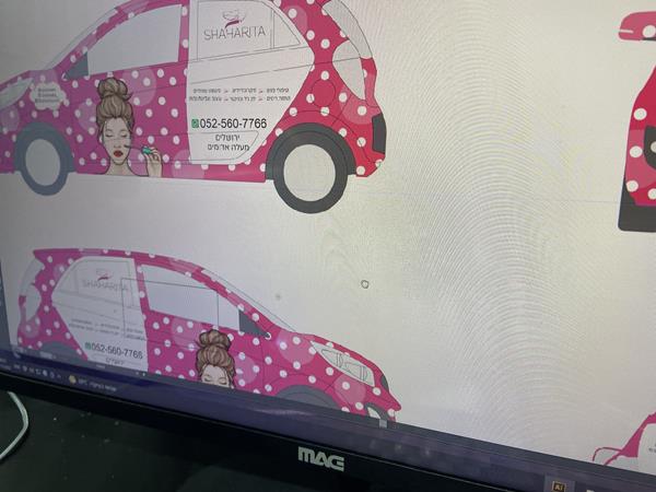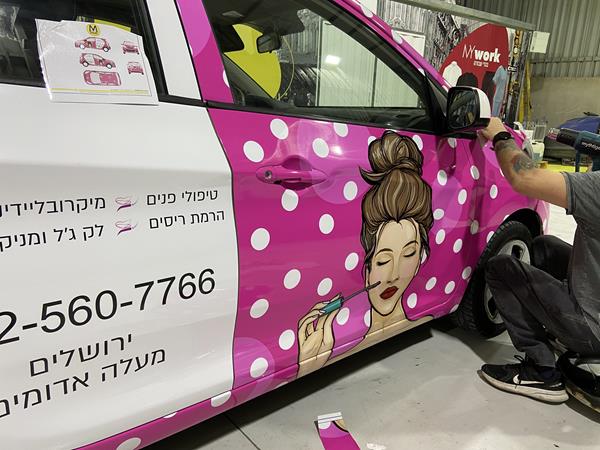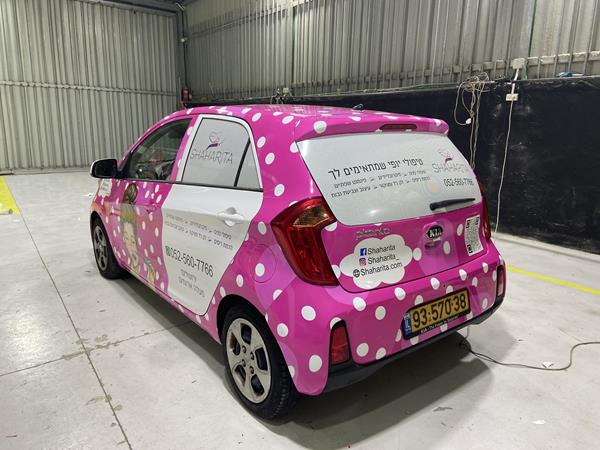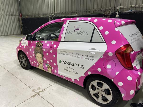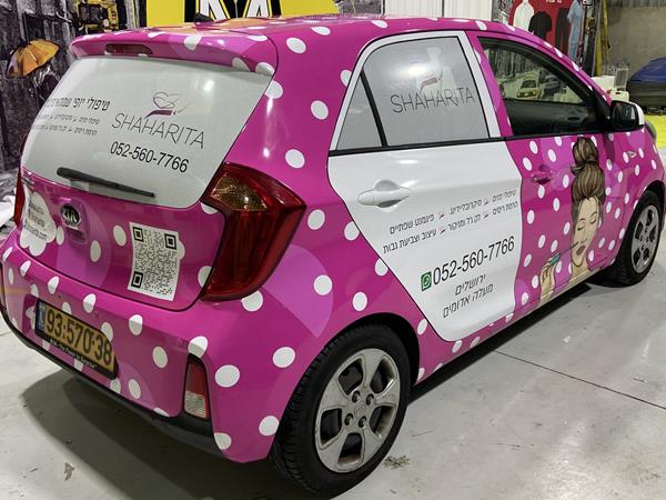 שחריתה בחרה לבצע עיטוף מלא לרכב באמצעות מדבקות, והפיכתו לשלט חוצות נייד שמפרסם את העסק שלה 24/7 ללא הפסקה, בהשקעה חד פעמית.